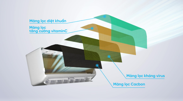 – Công nghệ làm sạch tự động giúp ngăn ngừa sự hình thành vi khuẩn, nấm mốc bên trong dàn lạnh. Giúp hạn chế nguy cơ gây hại và mang lại cho người dùng không khí trong lành hơn.