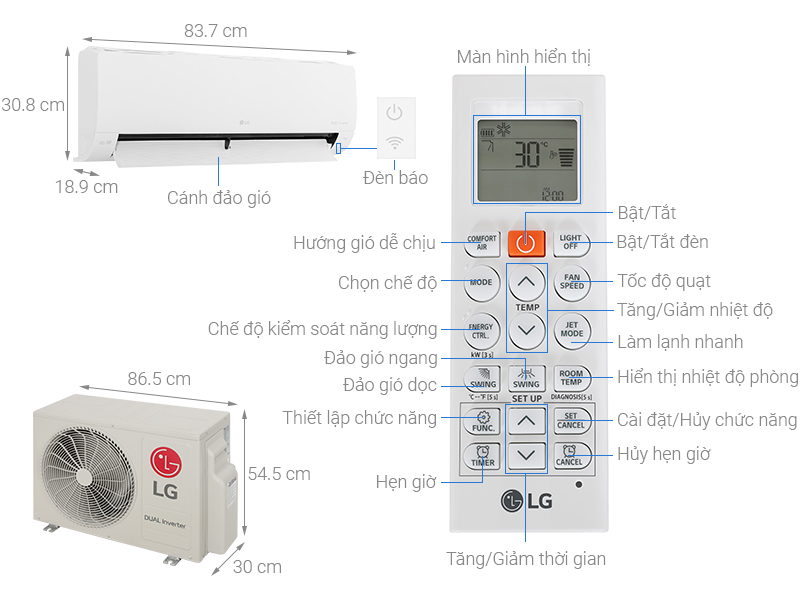 – Điều khiển bằng điện thoại, có wifi: Nhờ ứng dụng được cài đặt trên điện thoại, bạn có thể điều khiển từ xa các chức năng của máy lạnh LG Inverter dễ dàng, gồm cả việc kiểm soát điện năng tiêu thụ và chuẩn đoán sự cố nhanh chóng.