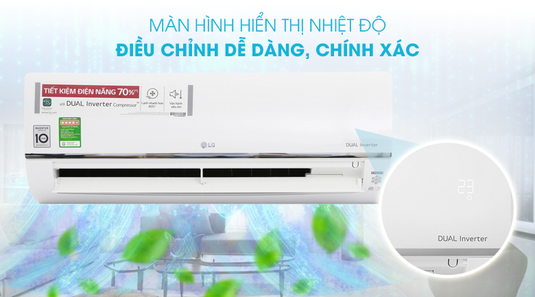 Công nghệ Dual Inverter giúp máy vận hành bền bỉ, êm ái. Chiếc máy lạnh inverter này còn có thể làm lạnh nhanh hơn 40%, giảm rung lên đến 88% và tiết kiệm điện lên đến 70% so với các máy thông thường. Từ đó bạn sẽ không còn phải quá lo lắng về chi phí điện hằng tháng nữa.