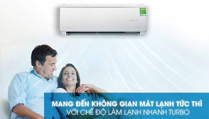 Điều hòa Midea MSAFII-24CRN8 có chế độ làm lạnh nhanh Turbo. Trong chế độ này, máy nén và quạt gió điều hòa sẽ hoạt động ở công suất cao nhất giúp hạ nhiệt không khí nhanh chóng mà không cần chờ lâu. Nhờ đó, người dùng có thể thư giãn ngay lập tức trong không gian mát mẻ.