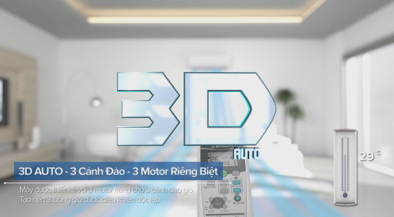 Chương trình một chạm này sẽ kích hoạt ba động cơ của điều hòa 2 chiều Mitsubishi Heavy hoạt động độc lập để phân phối đều luồng không khí và tạo điều kiện làm nóng hoặc làm mát tối ưu.