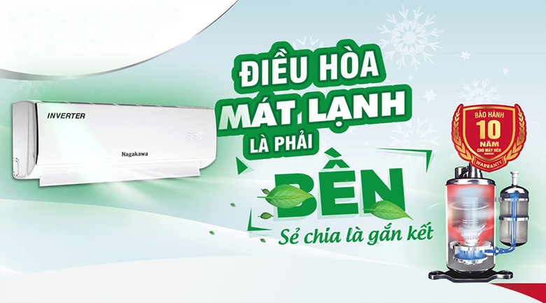 Điều hòa Nagakawa NIS-C18R2T01 Inverter mà chúng tôi cung cấp là hàng chính hãng, được bảo hành 1 đổi 1 trong vòng 24 tháng, và bảo hành 10 năm máy nén khí.