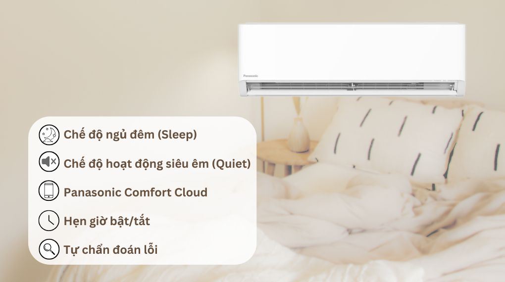 – Máy lạnh Panasonic hoạt động với công suất 1 HP, phù hợp lắp đặt trong không gian phòng ngủ hoặc văn phòng làm việc với diện tích dưới 15m².