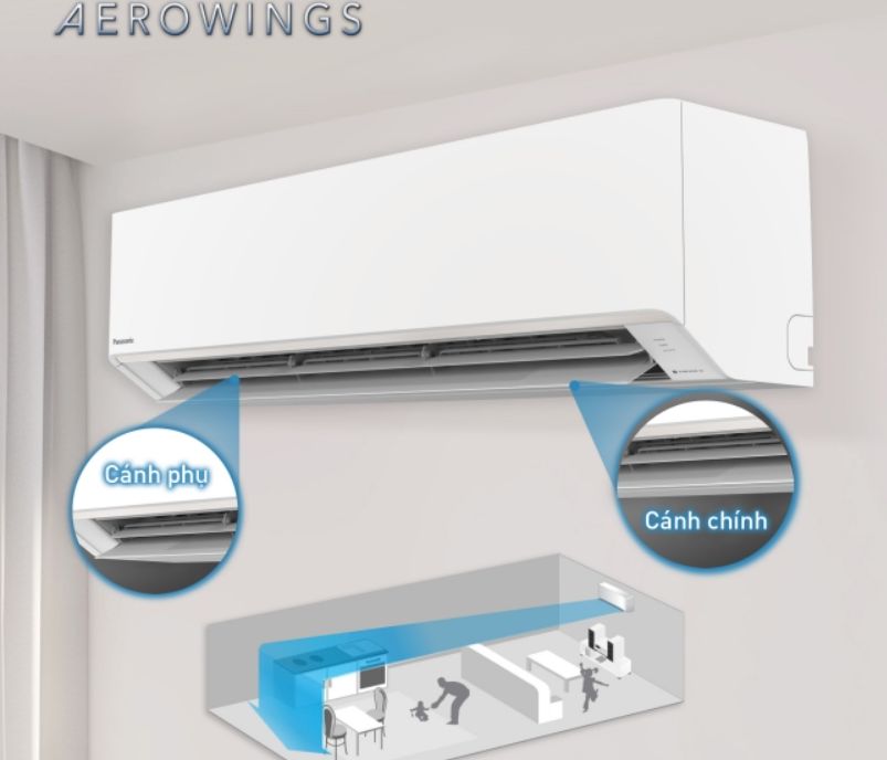Công nghệ AEROWINGS được trang bị trên Panasonic N24AKH-8 sẽ tập trung luồng gió thổi ra được nhanh hơn và xa hơn, không khí mát mẻ được trải rộng rãi khắp căn phòng bằng cách sử dụng 2 cánh đảo gió.