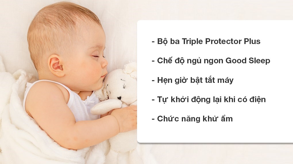 – Tự khởi động lại khi có điện: gặp sự cố cúp điện bất ngờ, khi có điện, máy sẽ tiếp tục chạy theo các cài đặt trước đó mà không cần thao tác trở lại.