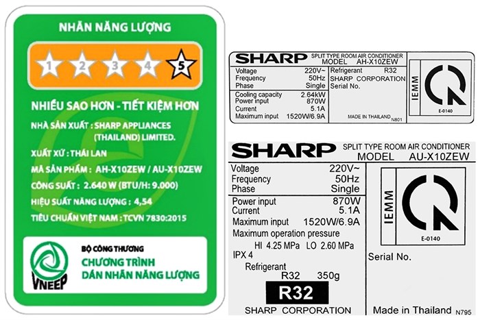 – Nhãn năng lượng 5 sao, hiệu suất năng lượng 4.54.
