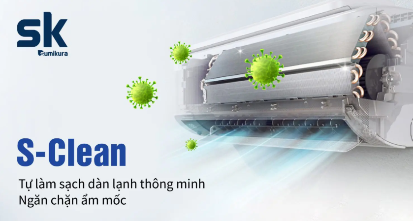 Vệ sinh dàn lạnh định kỳ là việc làm cần thiết nhưng chưa được người dùng nghiêm túc thực hiện vì còn nhiều bề bộn cuộn sống. Vì vậy, điều hòa Sumikura giá rẻ APS/APO-H280/MORANDI ra mắt tính năng S-Clean để làm sạch điều hòa qua cơ chế đóng băng – thổi gió trong 20 phút. Cơ chế này hữu ích và hiệu quả hơn vì vừa cuốn trôi bụi bẩn, vừa ngăn ẩm mốc và vi khuẩn sinh sôi. Việc của bạn chỉ là nhấn nút và chờ 20 phút để tận hưởng làn gió mát an toàn.