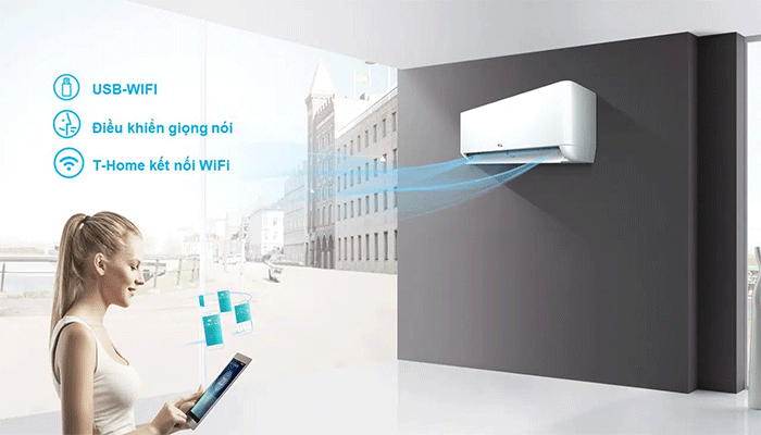 Điều hòa 12000btu giá rẻ TAC-13CSD/TPG21 có khả năng điều khiển bằng điện thoại kết nối wifi giúp bạn dễ dàng điều khiển điều hòa từ xa mà không cần thông qua remote vô cùng tiện lợi và thông minh. Chỉ cần một chiếc điện thoại có kết nối internet, bạn có thể bật điều hòa khi đang trên đường về nhà để ngôi nhà được mát lạnh ngay khi bạn vừa bước vào hoặc bạn cũng có thể kiểm tra và tắt máy nếu đã đi ra ngoài và quên điều chỉnh.