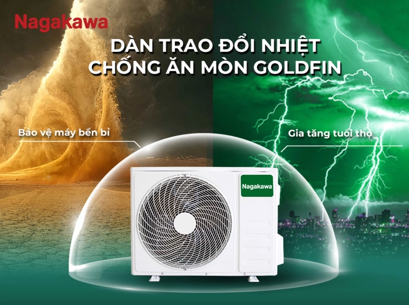 Công nghệ GoldFin sử dụng một lớp phủ bề mặt đặc biệt có khả năng chống lại sự oxi hóa và ăn mòn từ các yếu tố như nước, không khí và các hợp chất hóa học trong môi trường. Điều này giúp kéo dài tuổi thọ của dàn tản nhiệt và giảm thiểu nguy cơ hỏng hóc. Đặc biệt với lớp phủ GoldFin, điều hòa NIS-C09R2T29 có thể tăng cường hiệu suất làm lạnh bằng cách tăng cường truyền nhiệt, giúp dàn tản nhiệt hoạt động hiệu quả hơn, tiêu thụ năng lượng ít hơn và tiết kiệm chi phí vận hành.