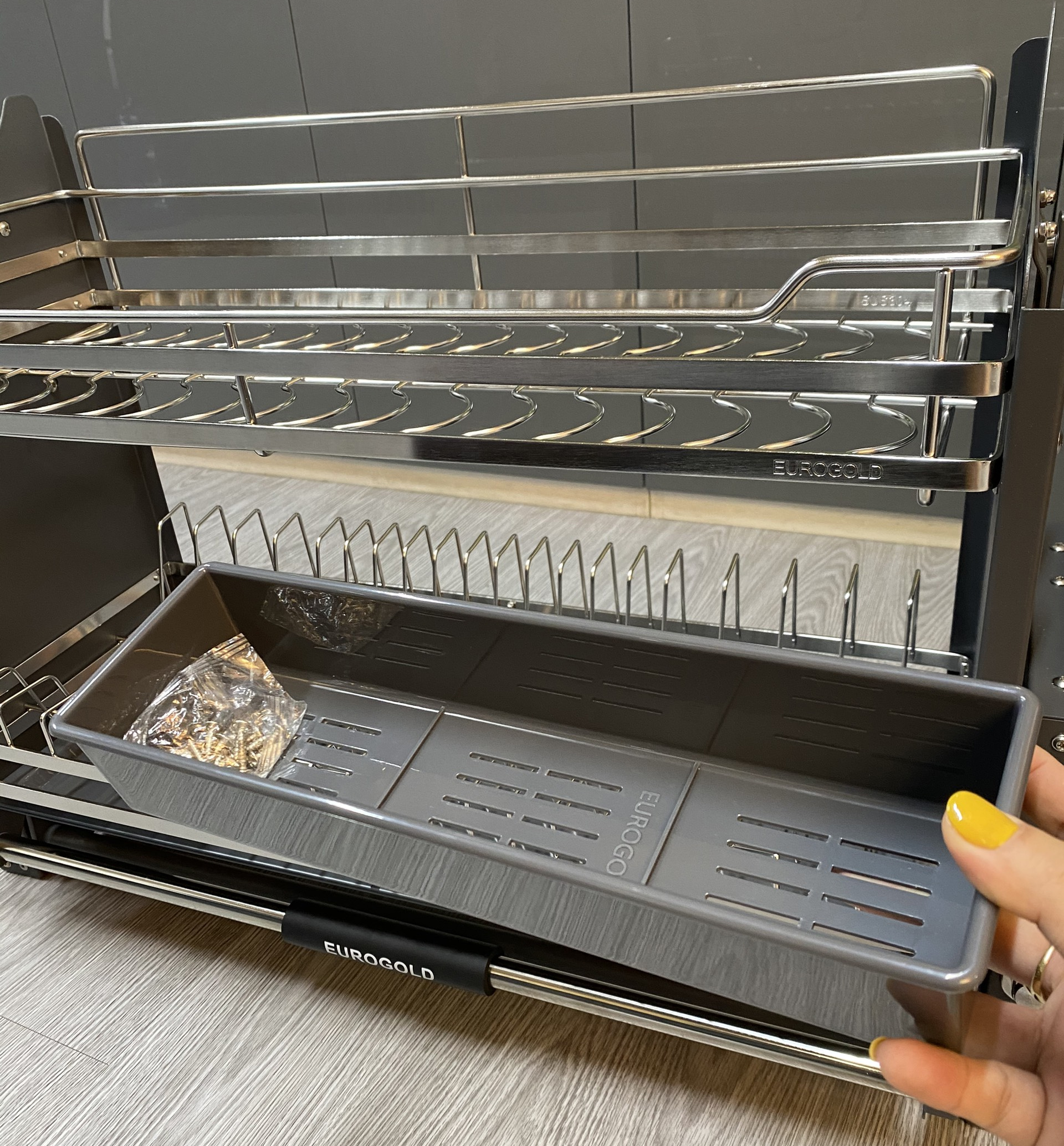 Được thiết kế và sản xuất theo dây chuyền công nghệ Châu Âu, giá bát đĩa nâng hạ Eurogold EUI304170 được lòng rất nhiều chị em nội trợ bởi kiểu dáng thanh thoát, hiện đại. mang lại một cảm giác sang trọng cho không gian bếp.