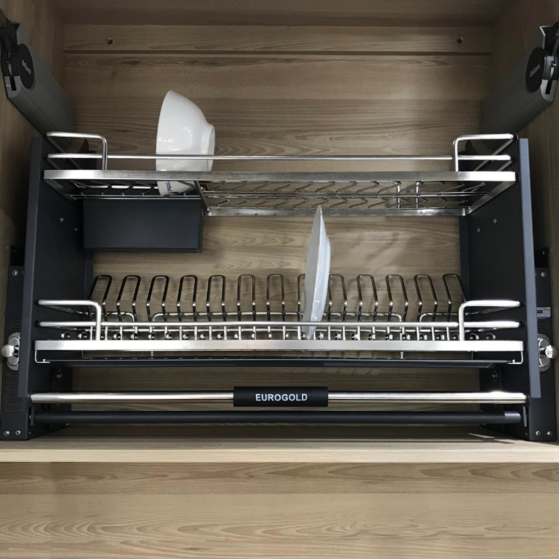 Giá bát đĩa nâng hạ Eurogold EPV9070Pro được thiết kế 2 tầng thông thoáng, rộng rãi và tiện dụng.