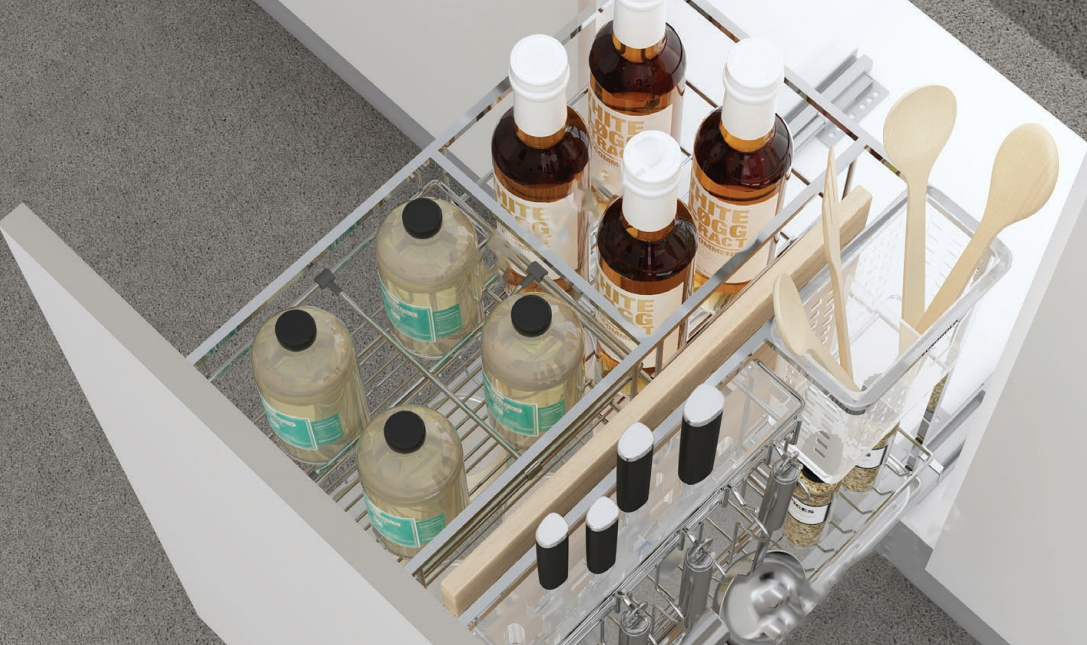 - Chức năng chính: Lưu trữ dao, thớt, chai lọ gia vị… một cách hợp lý và tiện lợi.