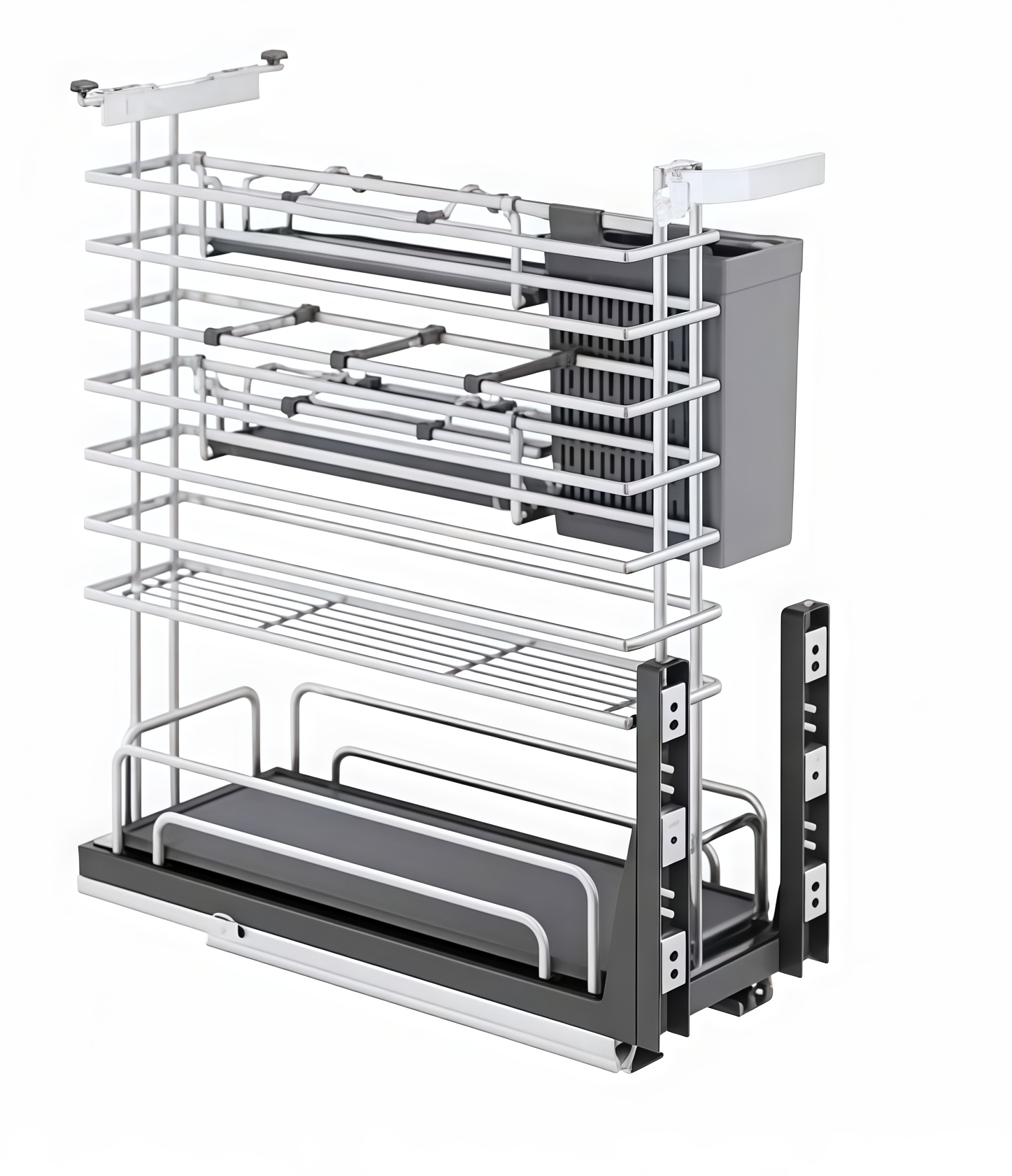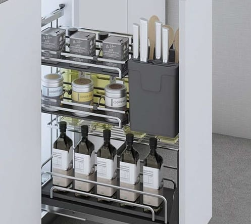 Tối ưu hoá không gian lưu trữ: Giá dao thớt inox 304 nan Oval EPV2025 có nhiều ngăn chứa với kích thước và chức năng khác nhau, phù hợp để lưu trữ dao kéo, thớt cũng như các dụng cụ nhà bếp khác. Các ngăn chứa đều được sắp xếp khoa học giúp bạn lấy đồ dễ dàng hơn. Hệ thống khung còn được đặt trên bộ ray âm giảm chấn cao cấp giúp việc đóng vào mở ra trơn tru và êm ái hơn.