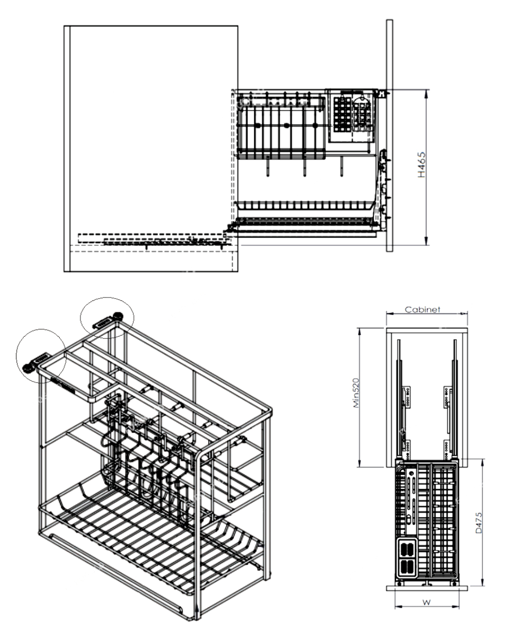Tối ưu hoá không gian lưu trữ: Giá dao thớt khung rổi inox 304 nan dẹt EP35F được thiết kế nhiều ngăn chứa với chức năng khác nhau, phù hợp với để lưu trữ dao thớt, kéo và các dụng cụ nhà bếp khác. Điều này giúp tiết kiệm không gian và giữ cho khu vực bếp luôn gọn gàng. Hệ thống giá dao thớt được liên kết với ray âm giảm chấn giúp cho việc kéo ra và đẩy vào êm ái hơn giúp tiền kiệm thời gian và công sức.