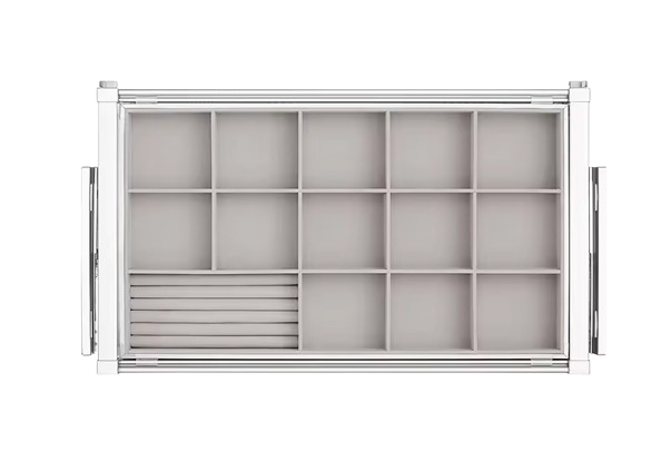 Thiết kế thông minh với 2 thanh ray trượt âm giảm chấn giúp nâng tầm giá trị cho giá để trang sức