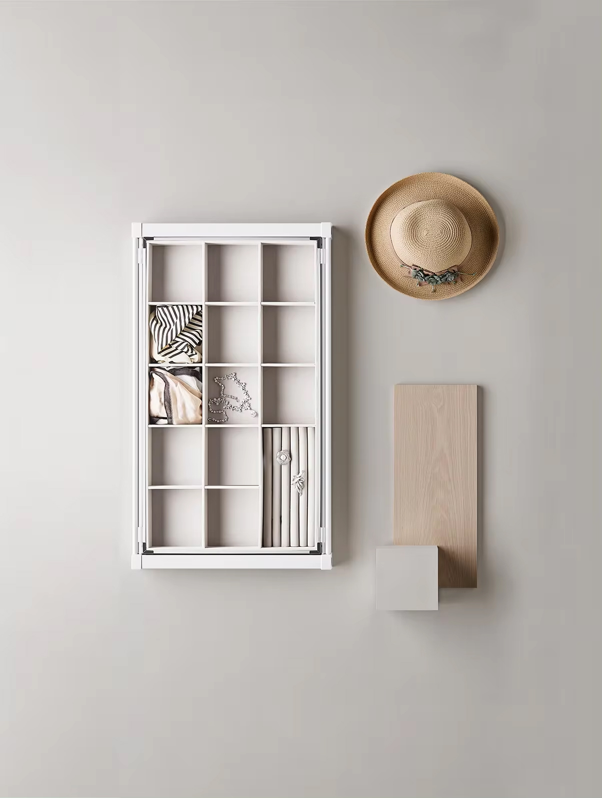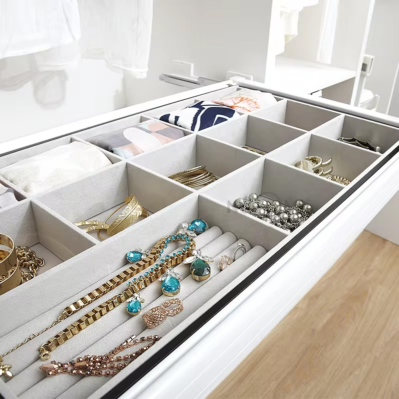 Thiết kế thông minh với 2 thanh ray trượt âm giảm chấn giúp nâng tầm giá trị cho giá để trang sức
