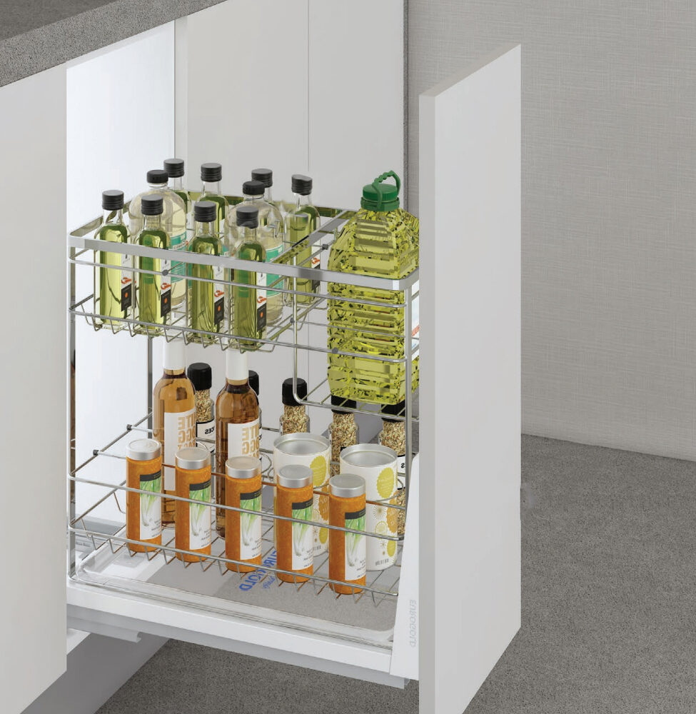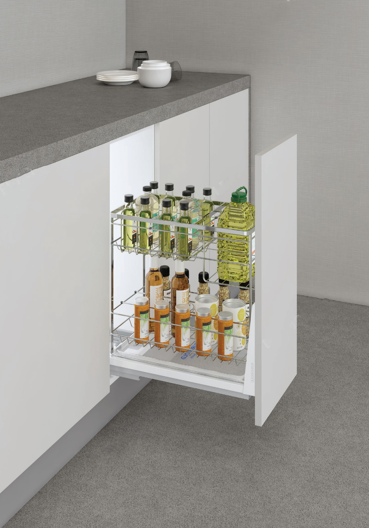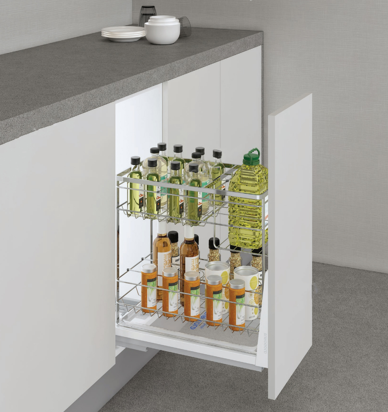 Một căn bếp hiện đại muốn gọn gàng hoàn hảo không thể thiếu các loại phụ kiện tủ bếp hữu dụng như giá gia vị với thiết kế đơn giản, thanh thoát, năng động, giá gia vị có thể giúp bạn sắp xếp gọn gàng được gần như toàn bộ các loại chai lọ gia vị cần thiết cho một gia đình mà không tốn quá nhiều diện tích.