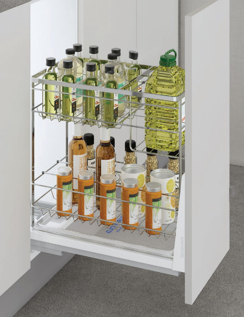 Một căn bếp hiện đại muốn gọn gàng hoàn hảo không thể thiếu các loại phụ kiện tủ bếp hữu dụng như giá gia vị với thiết kế đơn giản, thanh thoát, năng động, giá gia vị có thể giúp bạn sắp xếp gọn gàng được gần như toàn bộ các loại chai lọ gia vị cần thiết cho một gia đình mà không tốn quá nhiều diện tích.