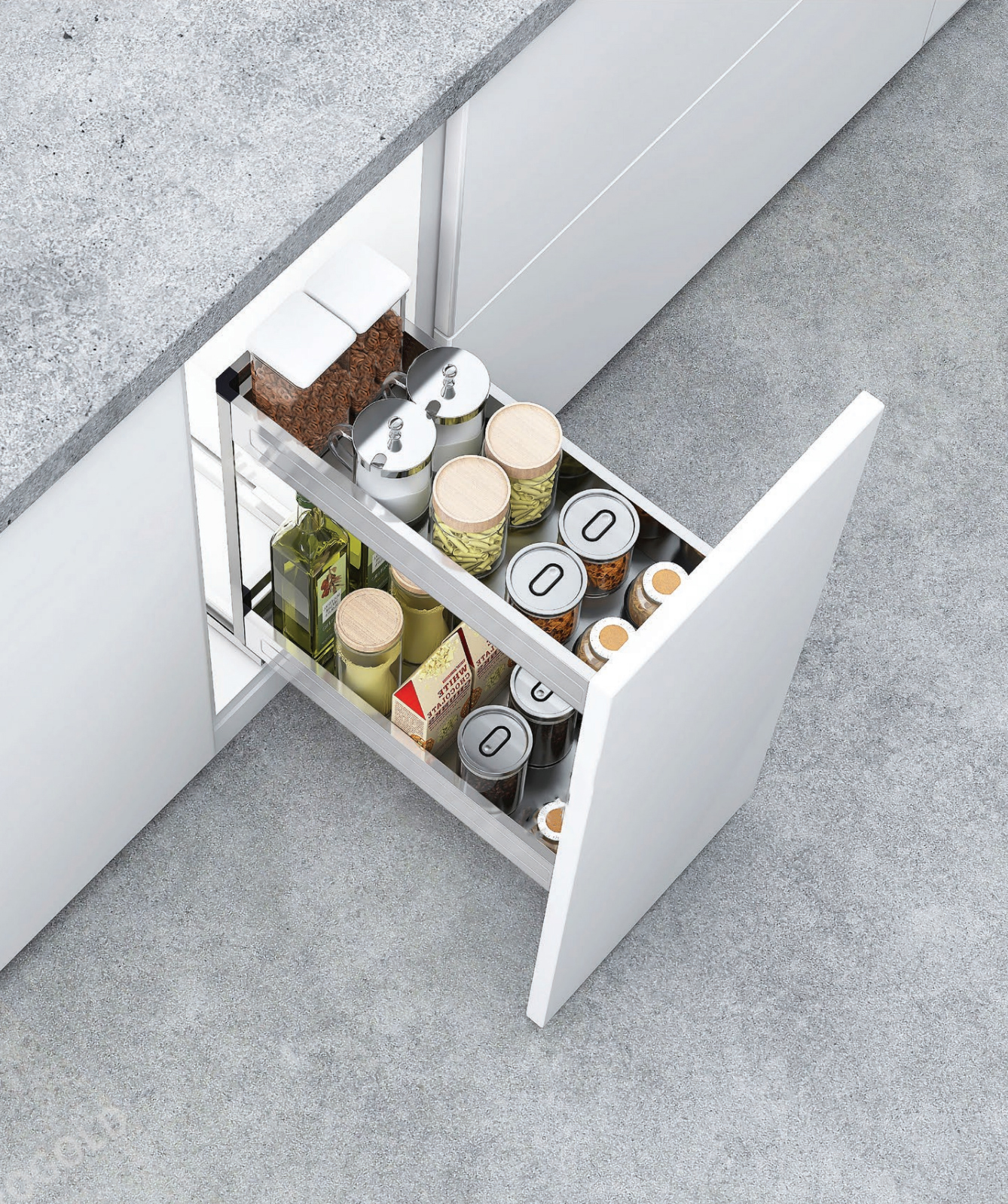 Với bộ gá này bạn có thể lắp đặt thêm cánh kéo với mọi chất liệu (gỗ, nhôm,…) theo đúng sở thích của bạn. Chỉ trong tích tắc thì giá để gia vị của bạn có thể hô biến thành một ngăn kéo thật linh hoạt, gọn gàng, đẹp mắt và vô cùng đồng bộ, sang trọng.