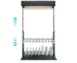 Sẽ không còn câu chuyện hàng ngày phải với lên tủ bếp trên để úp/ lấy bát đĩa, chỉ với thao tác chạm là giá bát đĩa đã có mặt trên bàn bếp. Và bất cứ đối tượng nào trong gia đình đều có thể dễ dàng quan sát và lấy bát đĩa một cách dễ dàng và tiện lợi bằng ”một cái chạm nhẹ”. Thêm vào đó, ngay cả khi tay người dùng đang ướt thì cảm biến vẫn hoạt động, ưu điểm vượt trội mà không phải giá bát đĩa nào trên thị trường đều có.