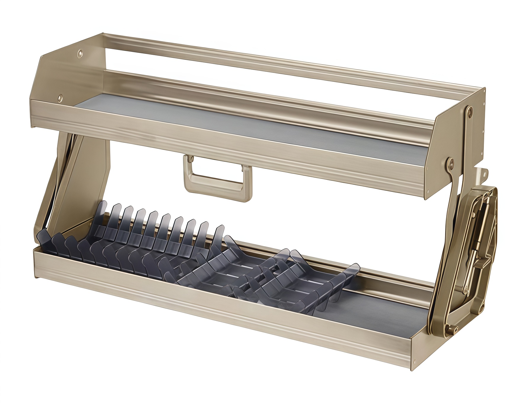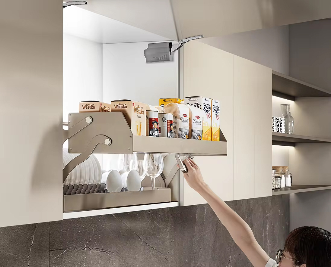 Giá nâng hạ đồ khô bát đĩa 2 tầng Eurogold EUM9060 có bộ cơ cấu nâng hạ vô cùng chắc chắn, có khả năng chịu được tải trọng lớn. Tích hợp giảm chấn giúp bạn đóng mở nhẹ nhàng, êm ái không hề tạo ra tiếng ồn khi kéo xuống và đẩy lên.