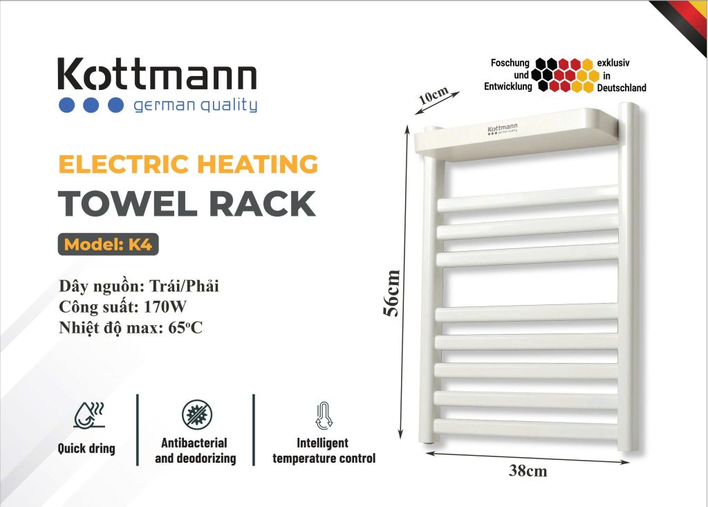 Giá Sấy Khăn Kottmann K4 – Nâng Tầm Phòng Tắm Hiện Đại Với Công Nghệ Sấy Tiên Tiến Từ Đức