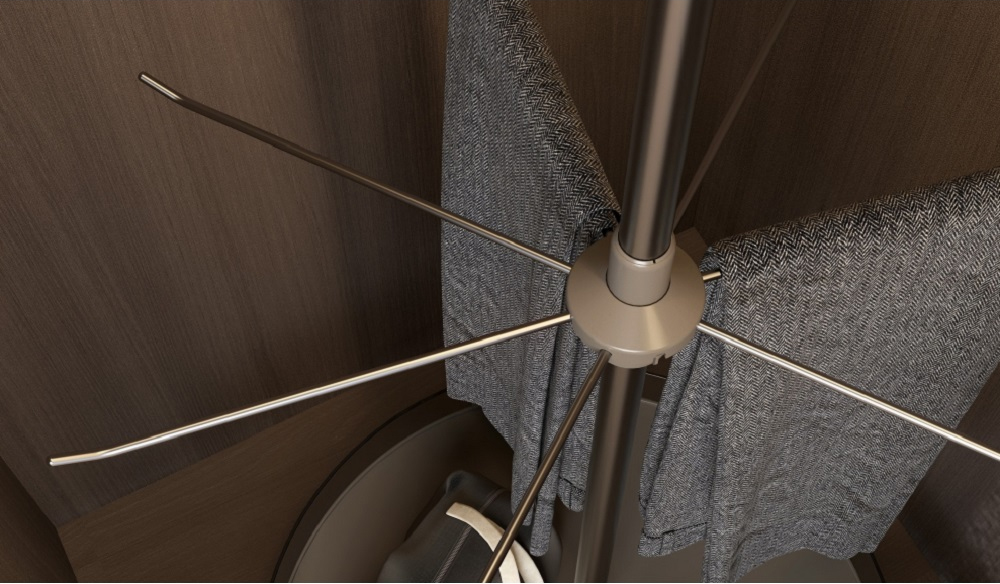Tầng giữa với hệ thống các thanh vắt quần âu vô cùng tiện lợi, hợp lý.