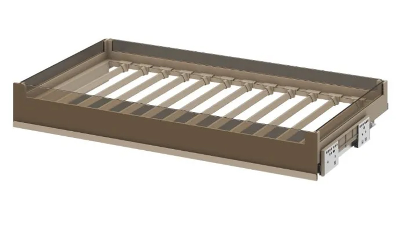 Hệ thống tay âm giảm chấn cao cấp có cấu tạo bền chắc, chịu được tải trọng cao. Có thể mở toàn phần và quan sát được toàn bộ quần trên giá treo. Mở ra, đóng vào dễ dàng, êm ái không phát ra tiếng ồn.