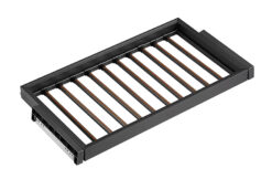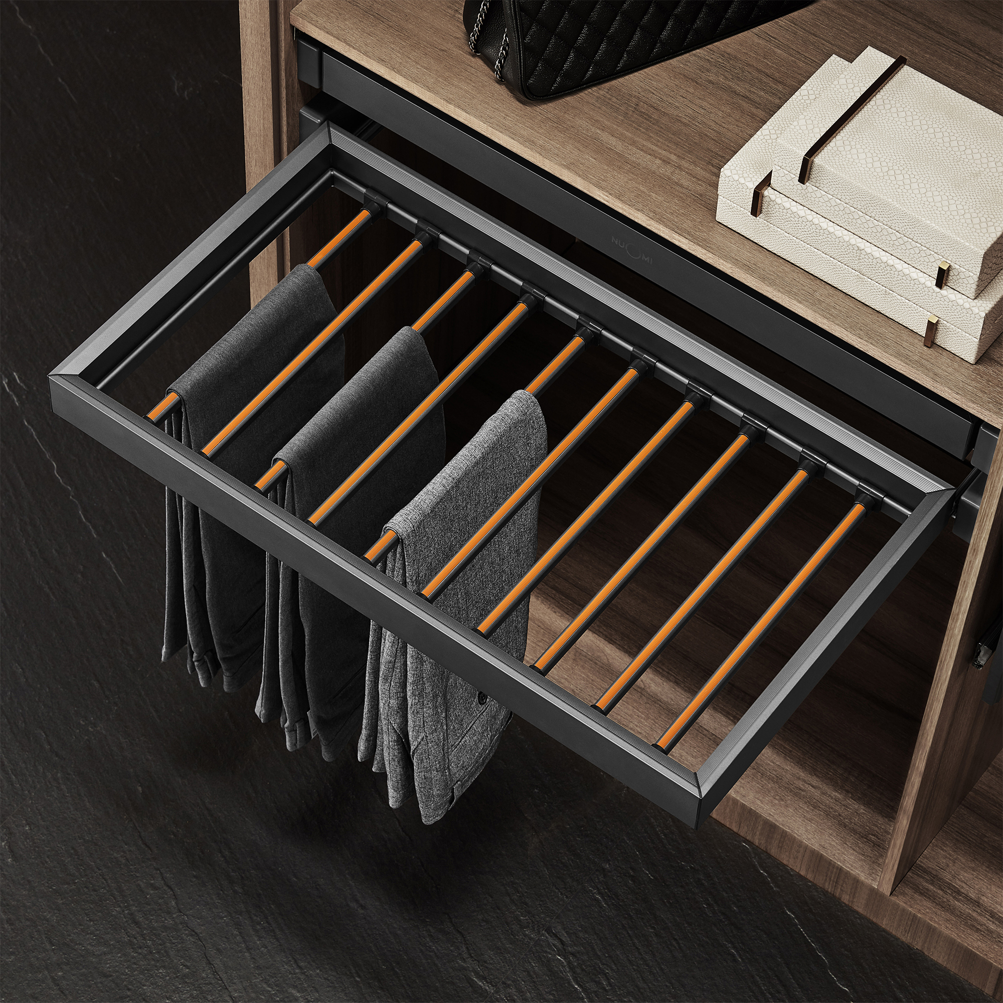 Hệ thống tay âm giảm chấn cao cấp có cấu tạo bền chắc, chịu được tải trọng cao. Có thể mở toàn phần và quan sát được toàn bộ quần trên giá treo. Mở ra, đóng vào dễ dàng, êm ái không phát ra tiếng ồn.