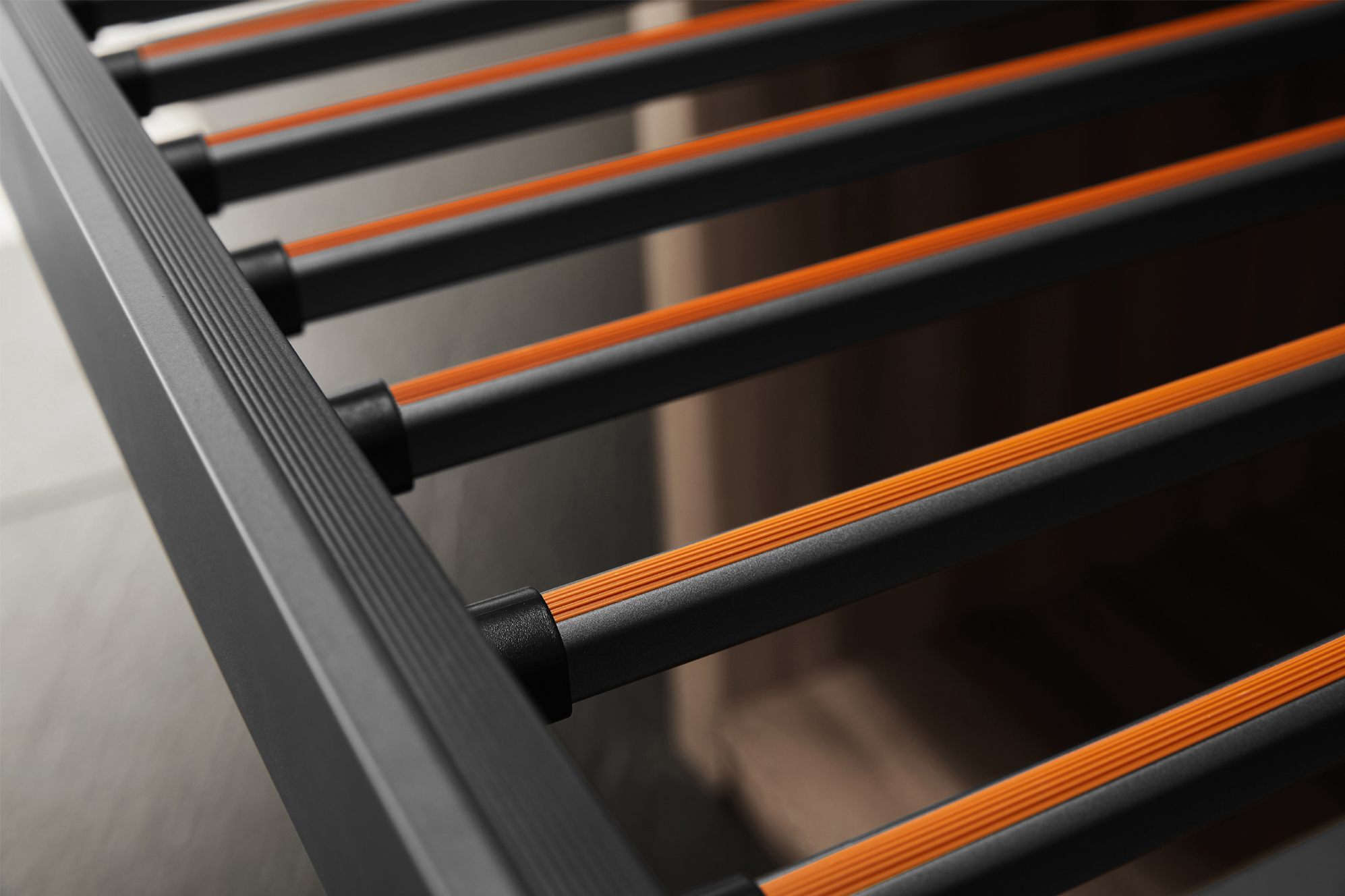 Cả 2 thanh 2 bên đều được sơn tĩnh điện công nghệ cao chống ăn mòn, chống trầy xước và chống bám bụi tốt. Thanh ray không bị lộ phần kim khí nên đảm bảo tiêu chuẩn về kiểu dáng cho sản phẩm.