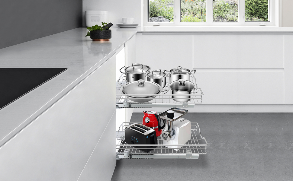 Toàn bộ sản phẩm sử dụng inox 304 xước mờ toàn phần, có khả năng chống gỉ, chống ăn mòn cao, rất phù hợp với môi trường bếp Việt Nam. Ray âm giảm chấn tải trọng lớn (~30kg) đảm bảo thao tác kéo – mở nhẹ nhàng, không gây tiếng động.