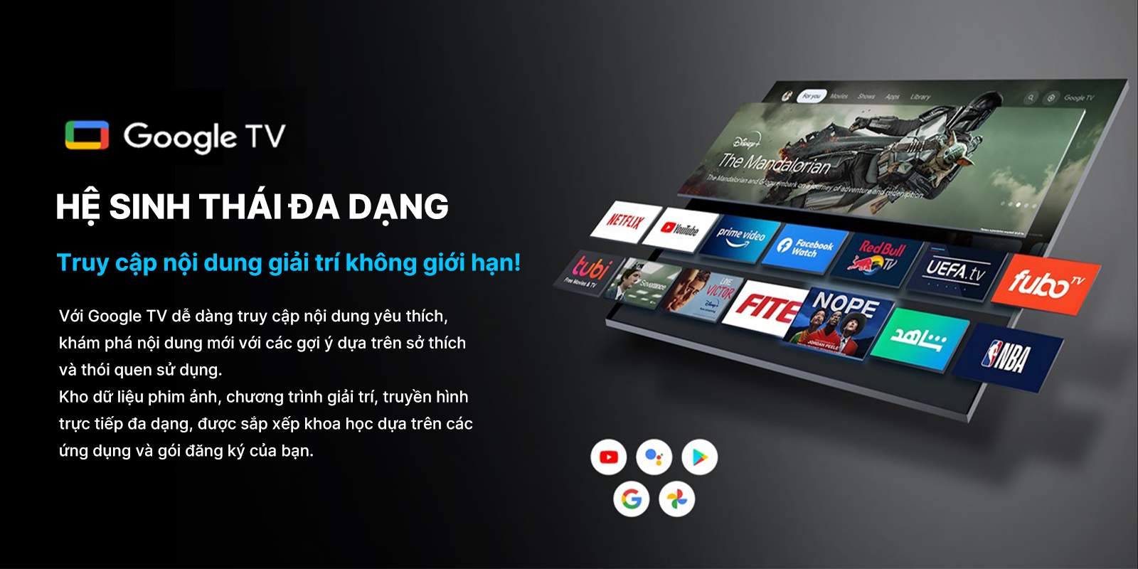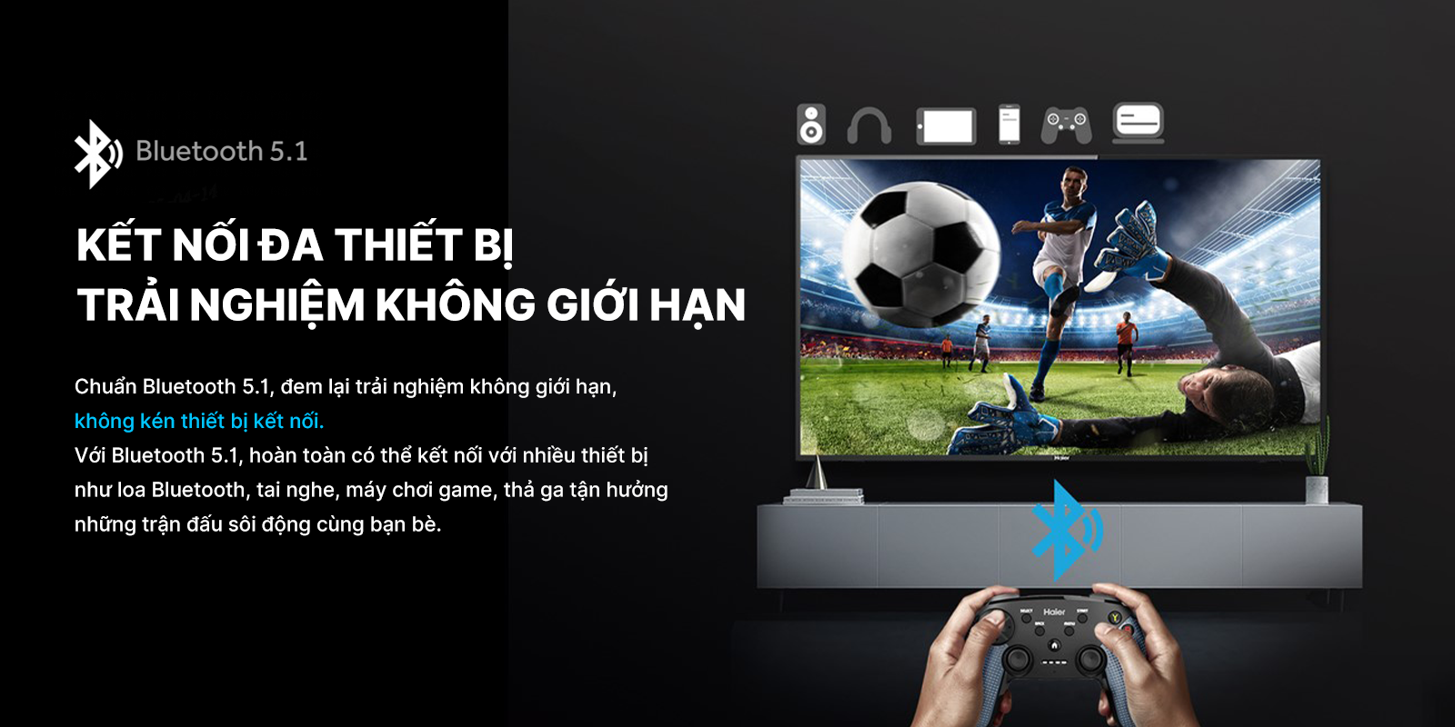 Mặt khác, tivi có khả năng kết nối Bluetooth 5.1 để ghép nối với các thiết bị không dây nhanh chóng, ổn định. Qua tính năng này, người dùng có thể nâng cao hiệu suất làm việc hoặc giải trí trên TV. Đồng thời, công nghệ cũng giúp tiết kiệm năng lượng khi hoạt động cùng các thiết bị ngoại vi.
