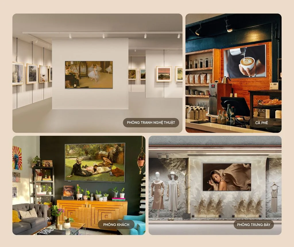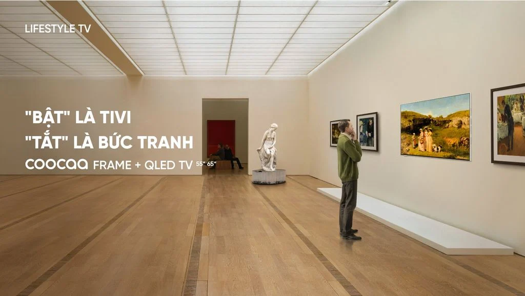 COOCAA Frame+ LN7000G mang vẻ đẹp tinh tế, biến mọi không gian từ phòng khách, phòng tranh nghệ thuật, quán cà phê đến phòng trưng bày trở thành điểm nhấn đẳng cấp.