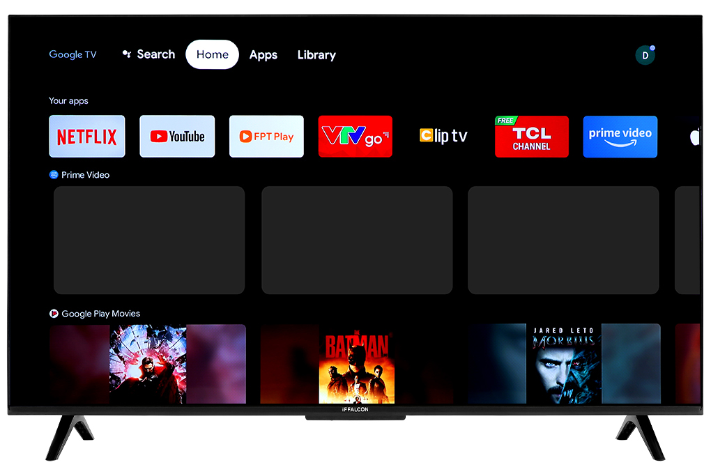 – Google Tivi iFFalcon sử dụng hệ điều hành Google TV với thiết kế giao diện hiện đại, thân thiện, tích hợp kho ứng dụng phong phú như Clip TV, FPT Play, Netflix, VietON, YouTube,… và hơn 700.000 ứng dụng tải thêm khác nữa qua Google Play sẽ đáp ứng nhu cầu sử dụng của mọi thành viên trong gia đình.