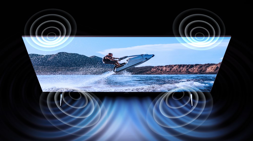 Tivi trang bị hệ thống loa Onkyo 60W với 2.2.2 kênh âm thanh kết hợp công nghệ âm thanh vòm Dolby Atmos, DTS-HD và DTS Virtual:X sẽ tạo không gian âm thanh 3D sống động, mạnh mẽ. Âm thanh vòm được tái tạo trung thực sẽ mang lại cảm giác chân thực như đang thưởng thức tại rạp chiếu phim.