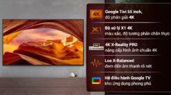 Google Tivi Sony 4K 55 inch KD-55X77L sở hữu màn hình có kích thước 55 inch, độ phân giải 4K, trang bị công nghệ nâng cấp hình ảnh 4K X-Reality PRO, công nghệ chuyển động mượt Motionflow XR 200, loa X-Balanced đem đến âm thanh rõ nét và âm trầm phong phú cho từng thước phim và giai điệu âm nhạc,… giúp bạn có thể tận hưởng những thước phim sắc nét không khác gì đang xem tại rạp chiếu phim. Đây là sản phẩm không thể thiếu khi vừa có thể làm vật trang trí trong không gian gia đình, vừa đem đến nhiều tính năng giải trí cho bạn.
