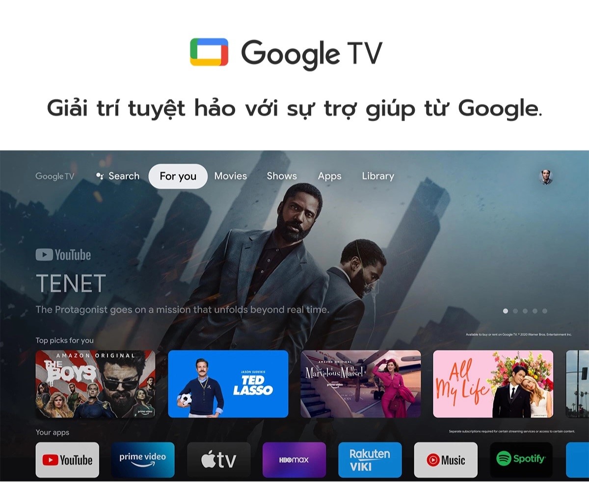 Google tivi TCL chạy hệ điều hành Google TV OS mới nhất cùng với kho ứng dụng Google Play phong phú, đa dạng: YouTube, Netflix, Zing TV, FPT Play, Clip TV,… đáp ứng mọi nhu cầu xem phim, nghe nhạc giải trí.