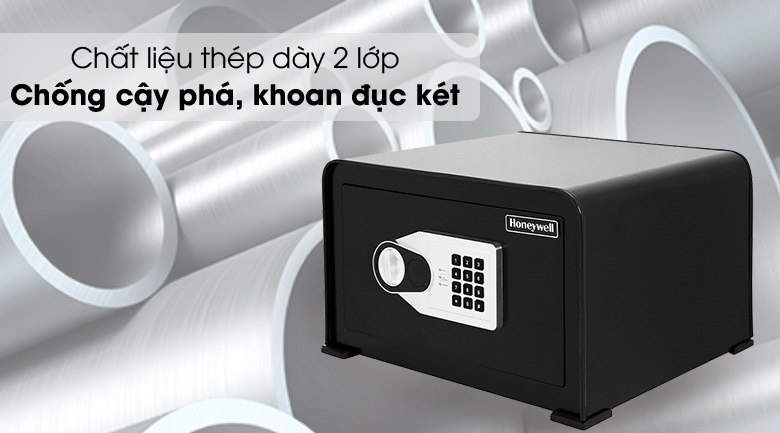 Két sắt Honeywell với chất liệu thép dày 2 lớp giúp bảo vệ an toàn tài sản của bạn khỏi sự cậy, đục hay khoan của kẻ gian.