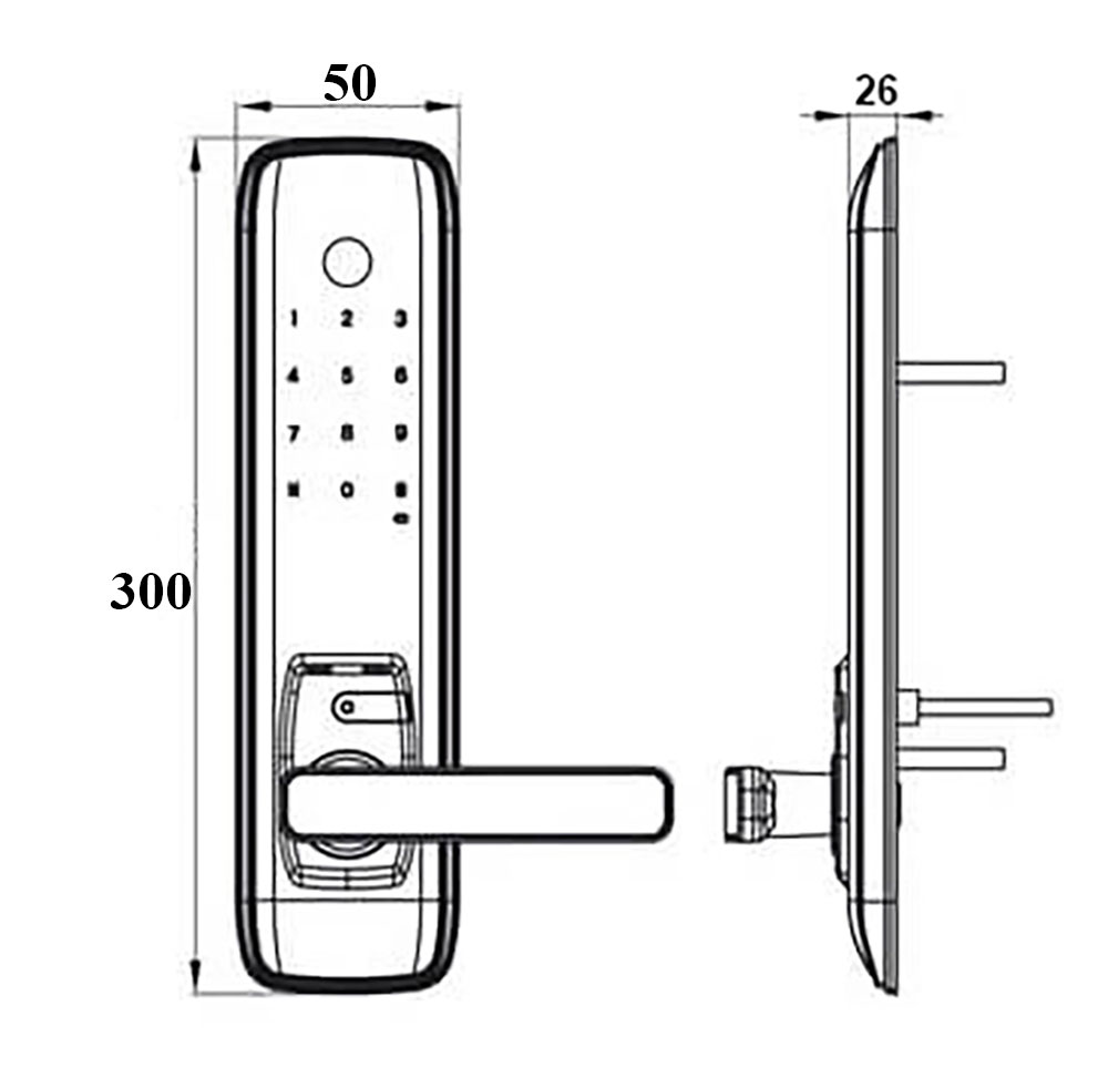 Khóa có kích thước 26x50x300 mm, có thể lắp đa dạng cho các loại cửa ở chung cư, nhà dân, khách sạn, khu trọ…