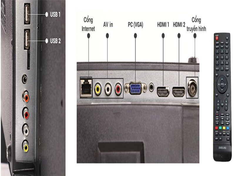 + Cổng VGA: Cho phép kết nối hình ảnh, âm thanh từ laptop sang tivi để hiển thị nội dung.