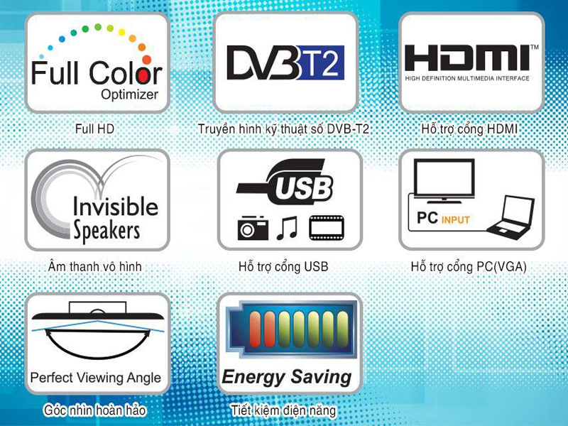 Độ sắc nét hiển thị đáp ứng tốt nhu cầu sử dụng của hầu hết nhiều khách hàng. Góc nhìn rộng tăng độ trải nghiệm tại nhiều vị trí xem trong nhà.