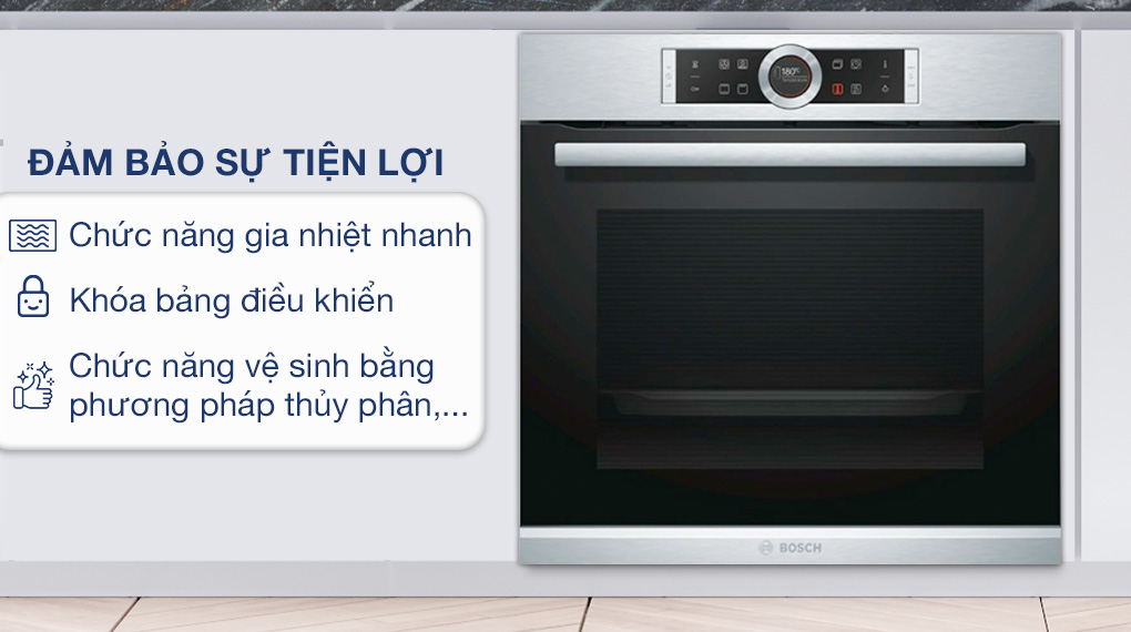 – Lò nướng Bosch này được thiết kế kiểu âm tủ gọn gàng, sang trọng theo phong cách Châu Âu, nâng cao tính thẩm mỹ cho không gian bếp.