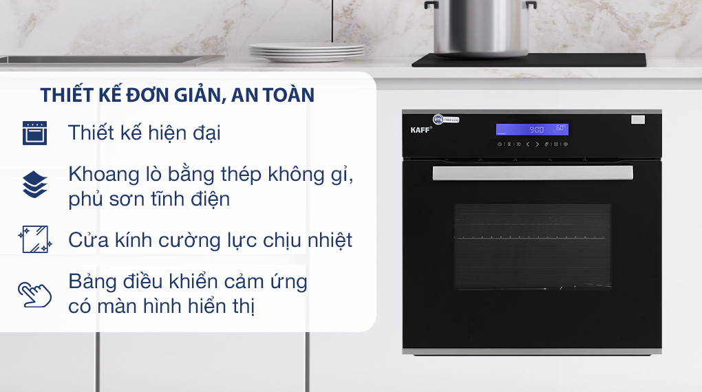 – Lò nướng KAFF có thiết kế hiện đại, sang trọng, phù hợp với mọi không gian bếp.