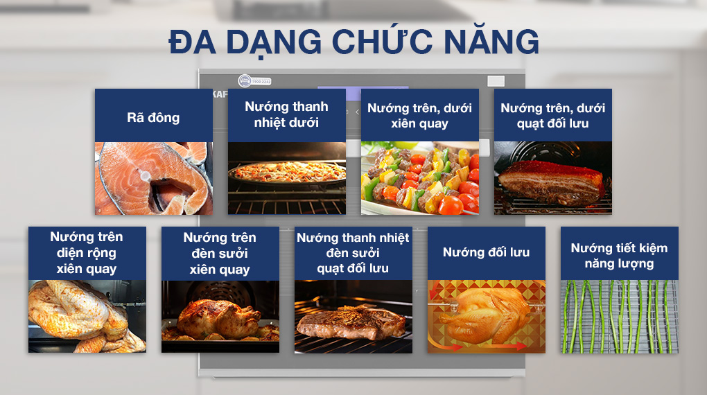 – Nướng tiết kiệm năng lượng: nhiệt tỏa đều từ cả phía trên và dưới, giúp thức ăn chín đều nhanh chóng, tiết kiệm điện năng.