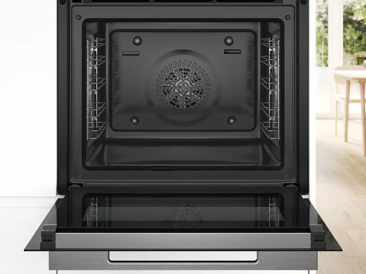 Lò nướng Bosch HBG7741B1 nổi bật với thiết kế âm tủ tinh tế giúp tiết kiệm không gian và tạo sự đồng bộ với nội thất bếp. Vỏ ngoài được làm từ thép không gỉ kết hợp mặt kính đen cường lực cao cấp, mang đến vẻ ngoài hiện đại, sang trọng và dễ dàng vệ sinh.