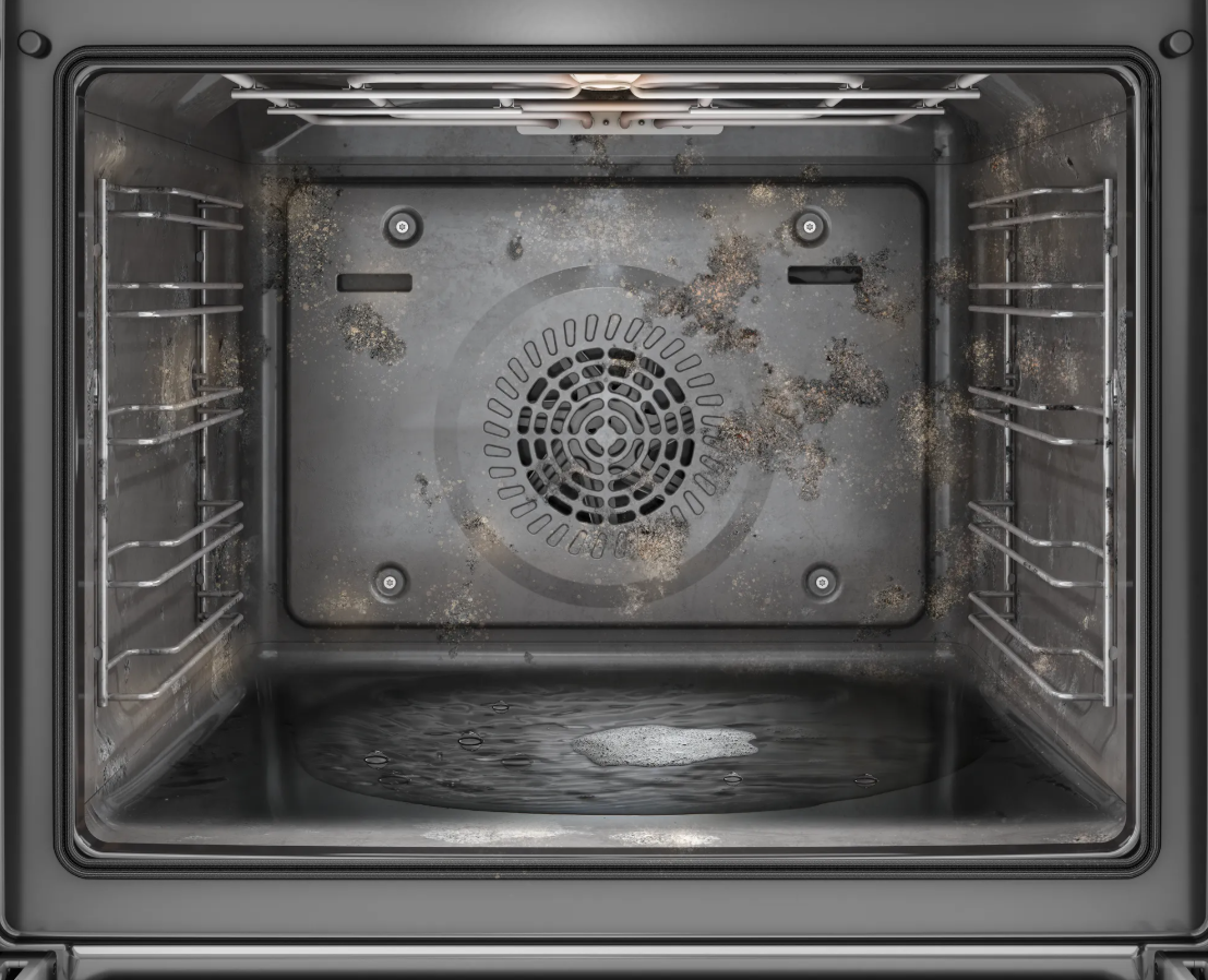 Lò nướng kết hợp hấp Bosch HSG7361B1 của bạn có hơi bẩn và cần được vệ sinh nhanh chóng không? Đơn giản chỉ cần đổ khoảng 400ml nước cùng một giọt chất tẩy rửa dạng lỏng vào đáy khoang lò và chọn chương trình làm sạch thích hợp. Hệ thống làm sạch thân thiện với môi trường làm mềm bụi bẩn, giúp việc vệ sinh sau này dễ dàng hơn.