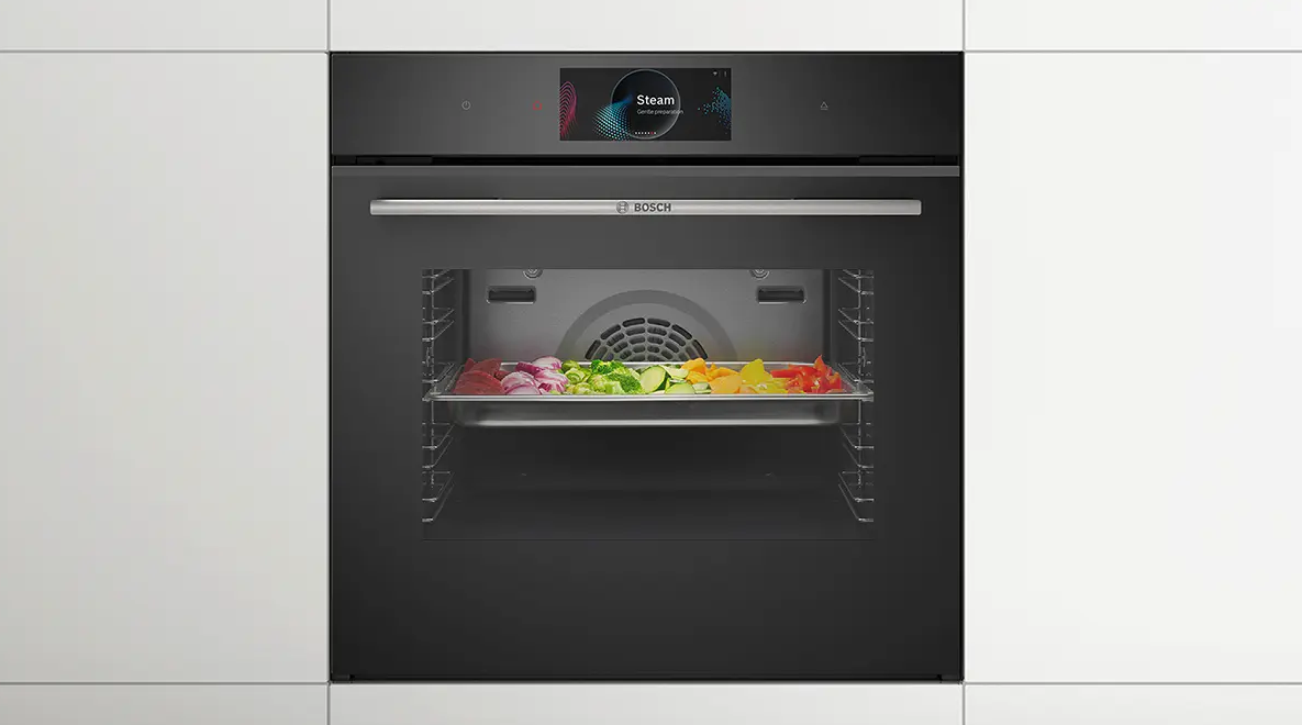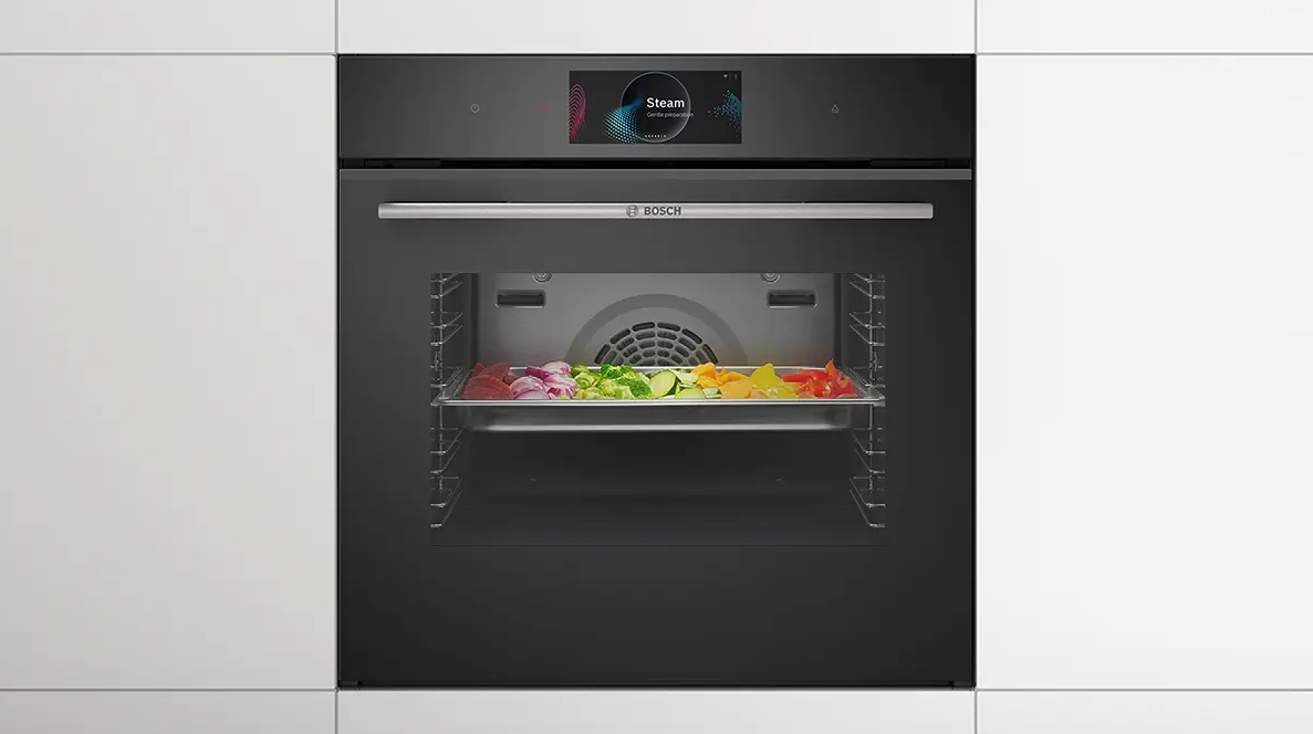 Với vòng điều khiển kỹ thuật số của Bosch, việc vận hành lò nướng kết hợp hấp Bosch HSG7361B1 của bạn không chỉ dễ dàng hơn mà còn sáng tạo hơn. Thay vì núm xoay, bạn có thể điều chỉnh trực quan cài đặt lò trực tiếp trên bảng điều khiển chỉ bằng ngón trỏ. Chỉ cần di chuyển ngón tay của bạn trên vòng được khắc trên bảng điều khiển và xác nhận cài đặt mong muốn bằng đầu ngón tay.