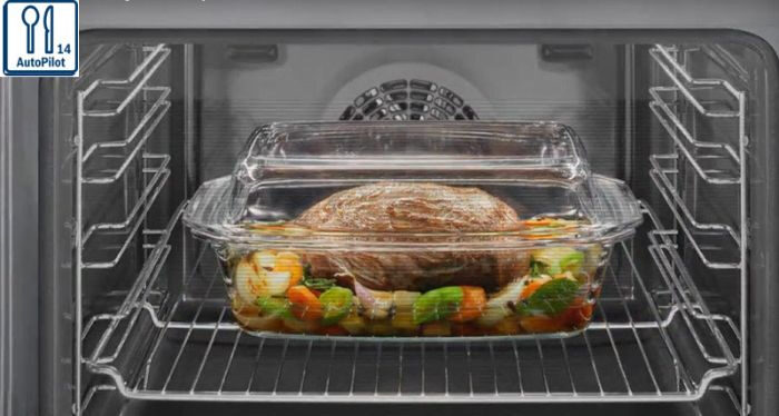 Công thức nấu ăn tự động – AutoPilot: Các công thức nấu ăn tự động được cài đặt sẵn trong Lò nướng kết hợp vi sóng Bosch CMG633BS1 Serie 8. Tất cả những gì bạn cần làm chỉ là đặt thực phẩm vào trong, chọn công thức nấu phù hợp (như nướng gà hay thịt bò), nhập trọng lượng; thiết bị sẽ tự động thiết lập nhiệt độ và thời gian nướng phù hợp giúp bạn đạt được kết quả hoàn hảo 100% cho dù đó là món nướng, thịt hay cá.