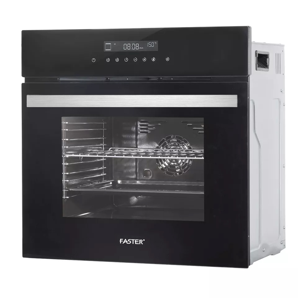 Lò nướng Faster FS OV7210B được thiết kế âm tủ giúp tiết kiệm được không gian bếp khi được lắp đặt vào những vị trí như hộc tủ hay ngăn chứa. Ngoài ra ở dưới bảng điều khiển có tay cầm bằng hợp kim nhôm chắc chắn thuận tiện cho việc đóng mở lò nướng được an toàn.
