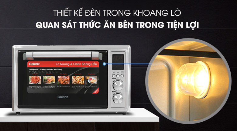 Sản phẩm có đèn chiếu sáng bên trong khoang lò giúp bạn quan sát quá trình nướng dễ dàng mà không cần mở cửa lò ra